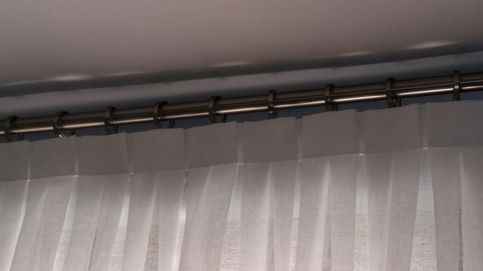 Cortinas onda perfecta cogadas sobre riel decoratico acabado niquel mate.